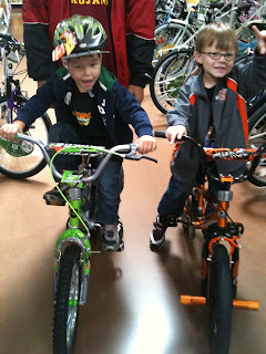 Onto the bikes.The boys have been asking us for BMX bikes for a long time now.We decided on labor day to go shopping for bikes.We had already seen what we wanted so it was a matter of choosing colors and paying for them and then of course buying all the extras - helmets,training wheels etc.